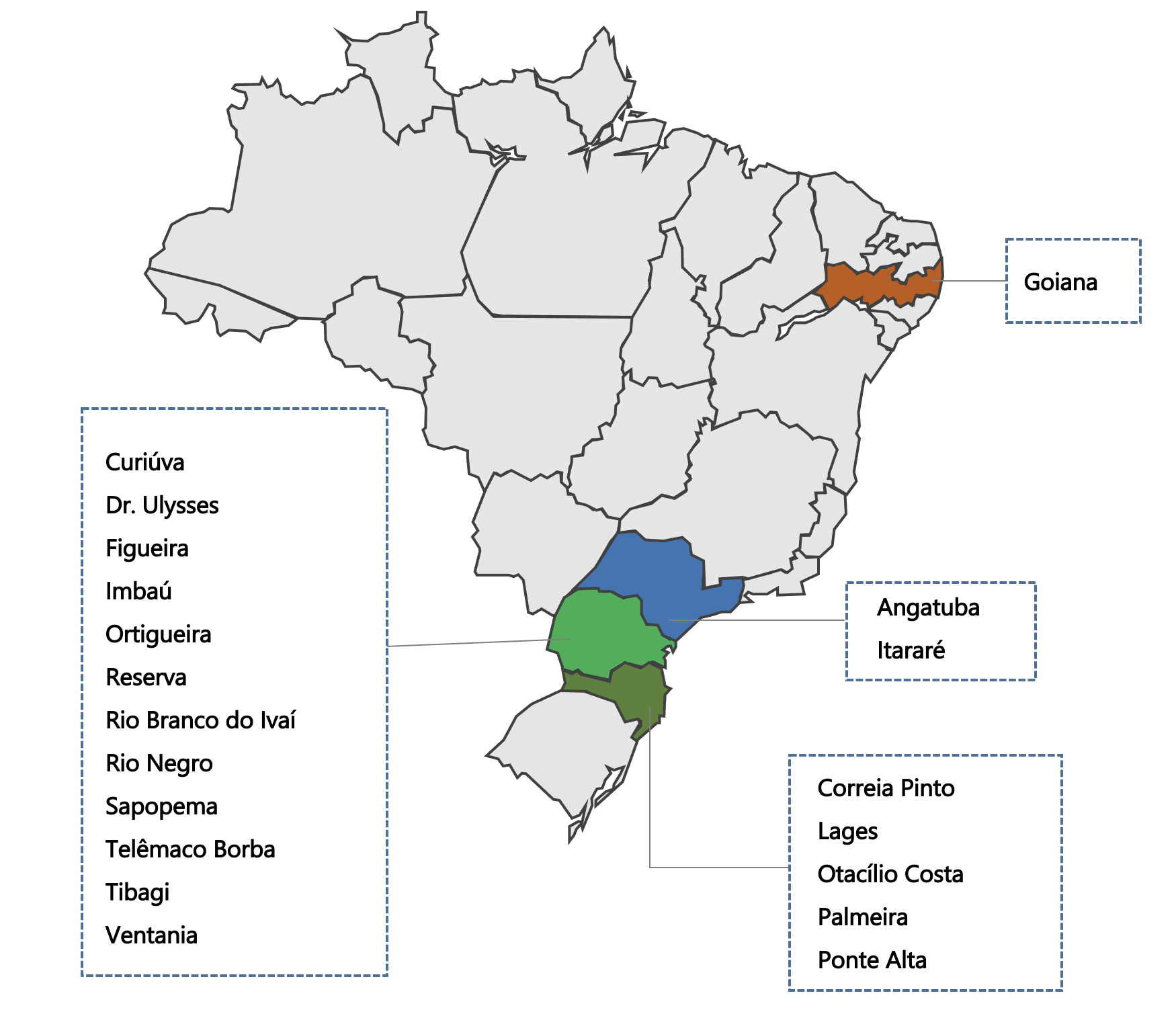 Além dos três municípios paranaenses pioneiros (Telêmaco Borba, Ortigueira e Imbaú), o programa conta em 2022 com a participação de outros nove municípios paranaenses (Curiúva, Dr. Ulysses, Figueira, Reserva, Rio Branco do Ivaí, Rio Negro, Sapopema, Tibagi e Ventania), cinco catarinenses (Correia Pinto, Lages, Otacílio Costa, Palmeira e Ponte Alta), dois paulistas (Angatuba e Itararé) e um pernambucano (Goiana), todos territórios de atuação da empresa. A iniciativa da Klabin conta com a consultoria e a operação técnica da Interação Urbana.