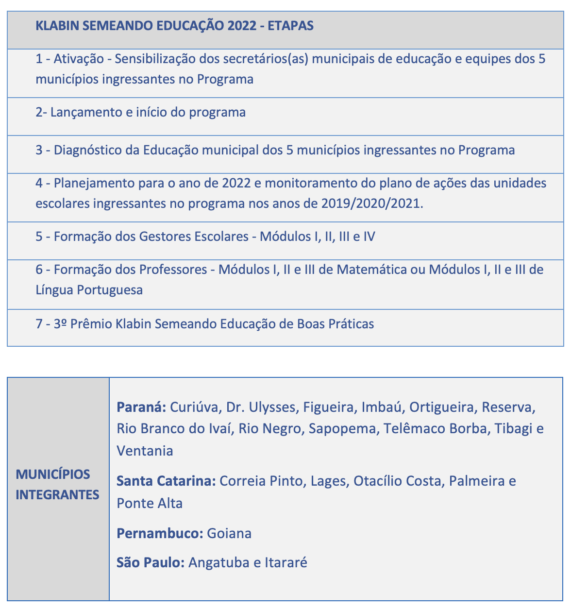O programa prevê, conforme o ano de ingresso do município, diferentes etapas de formação ou aprimoramento em Matemática, Língua Portuguesa e Gestão para professores e gestores, respectivamente. Inclui ainda o acompanhamento e monitoramento de ações e resultados do planejamento das unidades escolares, o monitoramento e acompanhamento dos dados do Ideb e a organização e promoção do 3º Prêmio de Boas Práticas Pedagógicas, aberto a todos os profissionais de educação das redes participantes. “Assim como ocorreu em 2021, a ideia é envolver todos, professores e gestores, nesse processo de produção e escrita de suas práticas, de modo que eles reflitam sobre elas, sobre como escrevê-las e sobre como elas podem ser compartilhadas com outros profissionais. Queremos desenvolver nos profissionais o olhar de um pesquisador”, explica Patrícia.