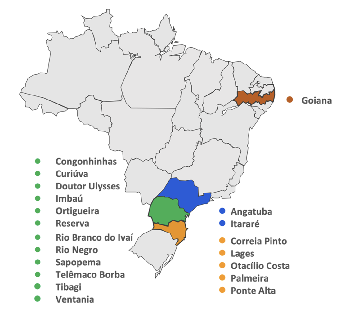 - Paraná (AID: Imbaú, Ortigueira e Telêmaco Borba):